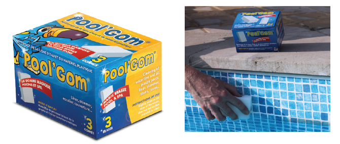 • Utilização sem qualquer tipo de detergente ou produto químico. Basta humedecer um canto do Pool’Gom® e utilizar.